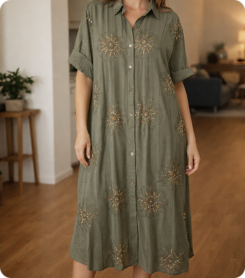 Vestido camisero lino rayado